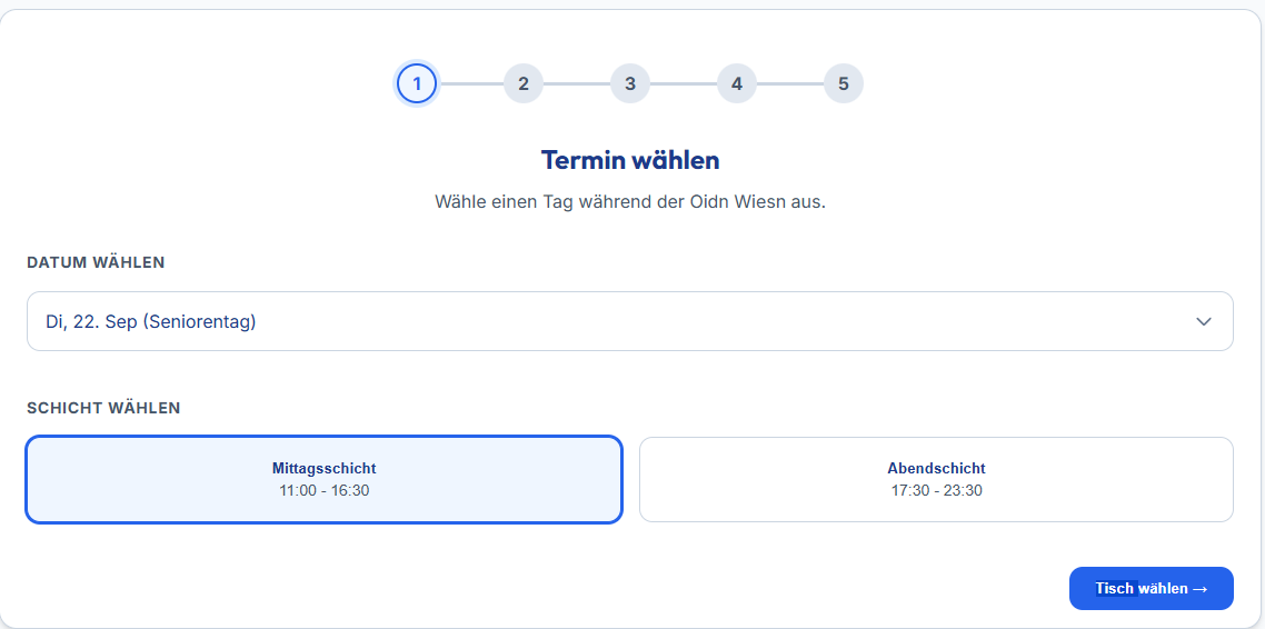 2. Tisch auswählen