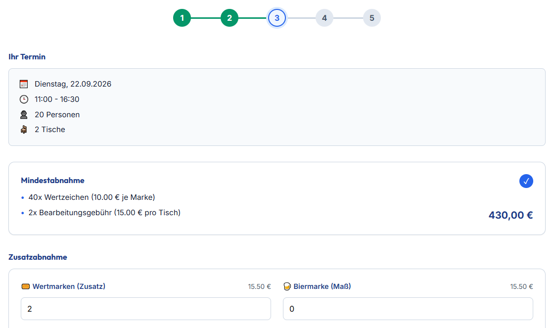 Die Wertmarken können Sie im Reservierungsbüro im Festzelt abholen.